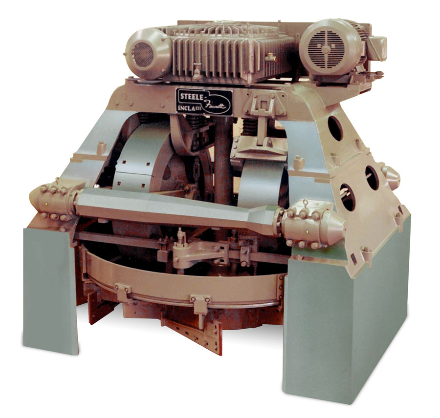 The Steele Incla IIIB Grinder is a direct descendant of the originals built by Thos. C. Fawcett, Ltd. Steele engineers incorporated gears, bearings and seals from U.S. suppliers, adapting the design for operation as a dry pan grinder or rim discharge grinder.